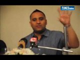 Comedian Russell Peters speaks to media
