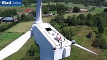 Drone Catches Man Sunbathing on Top of a 200ft Wind Turbine