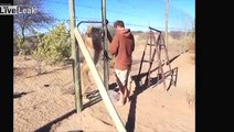 Valentin Gruener with Sirga the lion