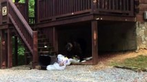 BIG bear scrounging in someone's trash.