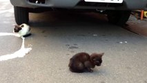 生まれたばかりの ねこちゃんに母親がしつけをします。(=^・^=)