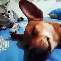 Кот ударил собаку, пока она мирно спала