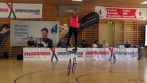 Ładna Pani robi sztuczki na rowerze