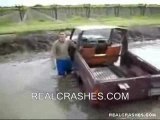 Guy crashes truck into ditch