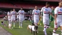 Sao Paulo players comes on the pitch with dogs before Palmeiras game