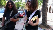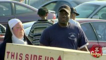 Un hombre discapacitado en un yeso de cuerpo entero y en una silla de ruedas no puedo para un taxi. Unas personas le ofrecen ayuda. Le da una mano pero .\r