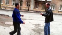 Stupid guy kicks and spits into a girl