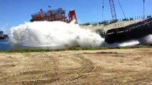 Cargo Ship Launch Causes Mini Tsunami