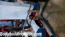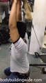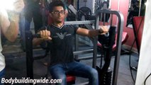 Place a curved rod with a certain weight in it . Lift the rod with a close grip given on the rod . Take the rod over your head , Bent your elbows and slowly lower the barbell at the most stretching position of triceps,then slowly lift the barbell up over the head stretching the triceps . Repeat this moments to gain more reps For more videos and Bodybuilding tips : visit Bodybuildingwide.com