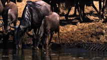 Crocodiles v Wildebeest in Slow Mo! Epic slow mo video of the biggest crocodiles in the world attacking wildebeest in the Grumeti, Africa. Music by Will Gregory .\r