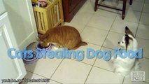 Mèo bá đạo cướp miếng ăn của chó