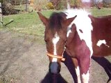 Starlight qui vient me voir, il me suis ... mais il a vu une feuille et se dit qu'il préfère manger !xd