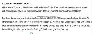 "Enjoy the F1 racing experience at the 2015 Formula 1 Abu Dhabi Grand Prix Live At http://www.formula1online.net/ Abu Dhabi is a city on the move. Not content with enjoying one of the world's richest oil reserves, the region has recently thrown itself into a massive programme of development. And one of the jewels in Abu Dhabi's crown is the new 5.55-kilometre Yas Marina Circuit, which on November 1, 2009, hosted the country's inaugural Grand Prix. It was also the first F1 twighlight race, with powerful lighting ensuring a seamless transition from day to night.