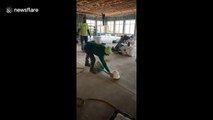 Genius hard-hat flip turned to painful hit to the face fail