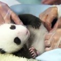 Panda cub tummy tickles.
