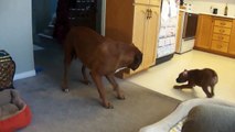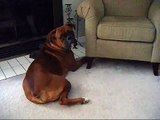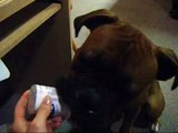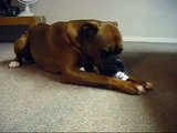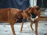 Greedy boxer son wont share bone with poppa