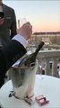 Elle rate le débouchage d'une bouteille de champagne sur son balcon !