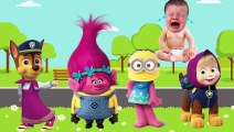 Wrong Heads Crying Baby with Trolls Minions Paw Patrol Masha and Bear Nursery Rhymes