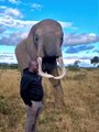 Elephant pretends to eat this guys hat