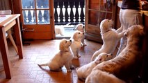 Golden Retriever Puppies looking forward to their meal