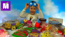 Макс делает лизуна в большой стеклянной колбе и распаковываем игрушки сюрприз и яйца с игрушками Машемс