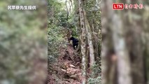 小心熊出沒!登山客鳶嘴稍來山步道健行 巧遇黑熊爬坡(民眾蔡先生提供)