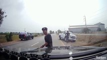 Truck Ends up Hitting Car While Trying to Overtake Another Truck on Narrow Road