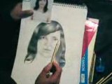 dessin d'un portrait avec les crayons couleurs acuarelle