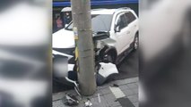 상가로 밀린 SUV에 3명 다쳐...전신주 충돌한 운전자 숨져 / YTN