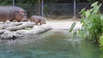 Newborn Hippo Learns To Swim