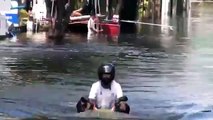 Motorbike Driver Ignores Flood