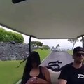 Girl falls out of golf cart while texting