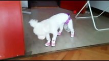 Bichon frise-I primi passi con le nuove scarpette:)