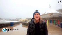 Une youtubeuse a voulu faire une vidéo sur le bord de mer pendant une tempête mais elle va prendre un poisson en pleine tete a la suite d'une grosse vague !