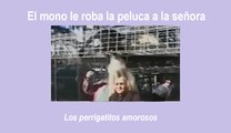 El mono le roba la peluca a la señora