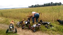 Dogs in wheelcart playing