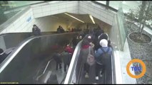 Elle se coince dans un escalator et va avoir beaucoup de chance