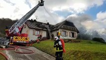 Intervention des pompiers pour eteindre un feu de maison