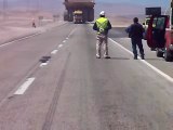 Camion de mineria alto tonelaje transportado con escolta
