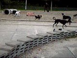Dogs playing in water