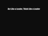 Download Act Like a Leader Think Like a Leader Ebook Online