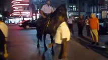 Une danseuse rentre à cheval en boite de nuit et le cheval n'apprécie pas trop l'ambiance
