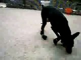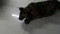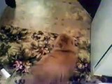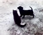 Щенок и котенок выясняют кто сильней