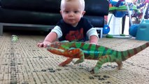 Хамелеон хочет удрать от малыша