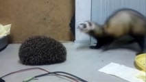 Любопытные хорьки и ежик