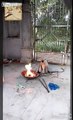 Hungry monkeys are very cute . A good man offers them food