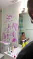 Toddler Blames Monster for Paint on Bathroom Wall