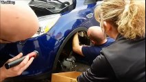 A mechanic pulls out squirrels that were burrowed inside of a wheel well!