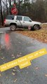 Car Being Pulled by Truck Crashes Into It After Breaking Sign Board
