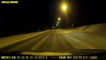 Man Saves His Car From Crashing Into Sliding Truck On Road